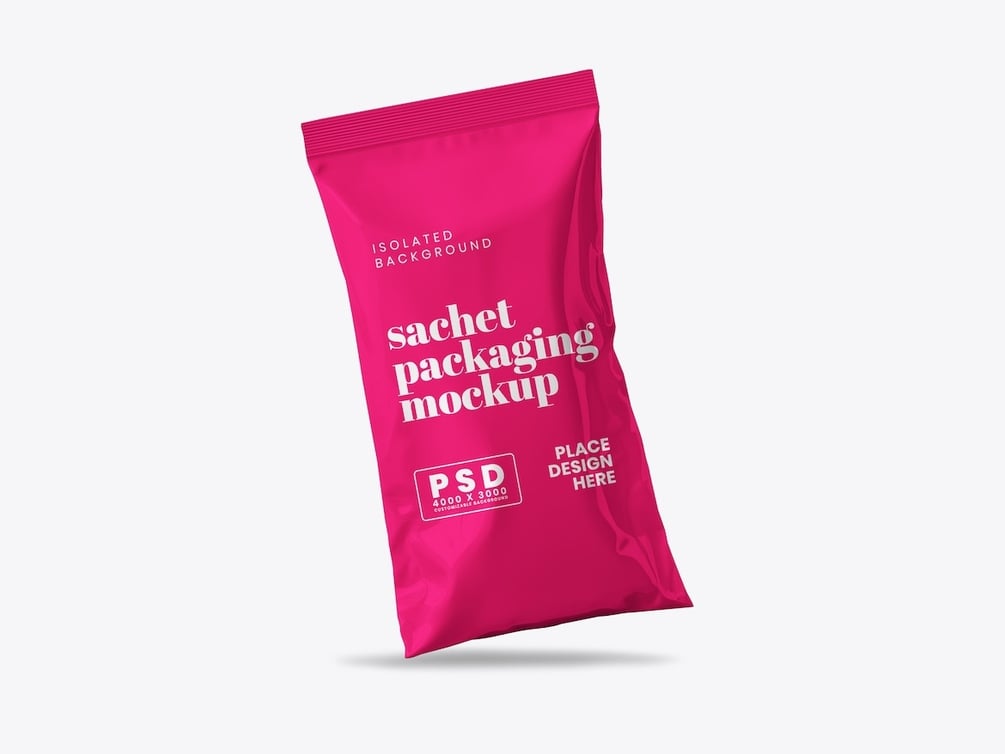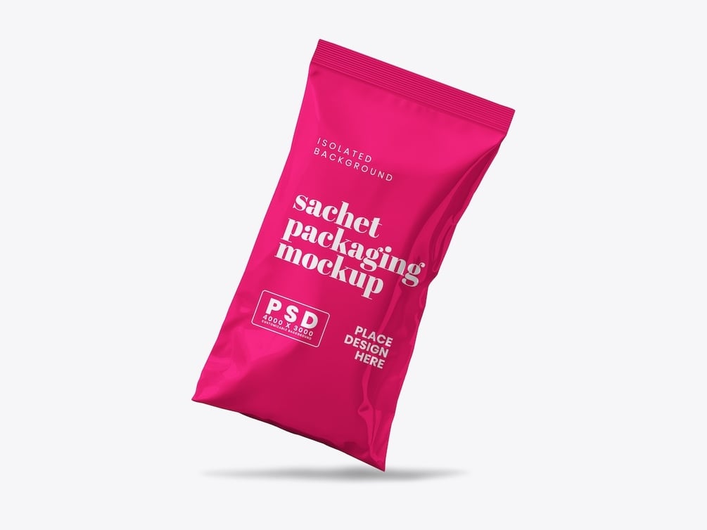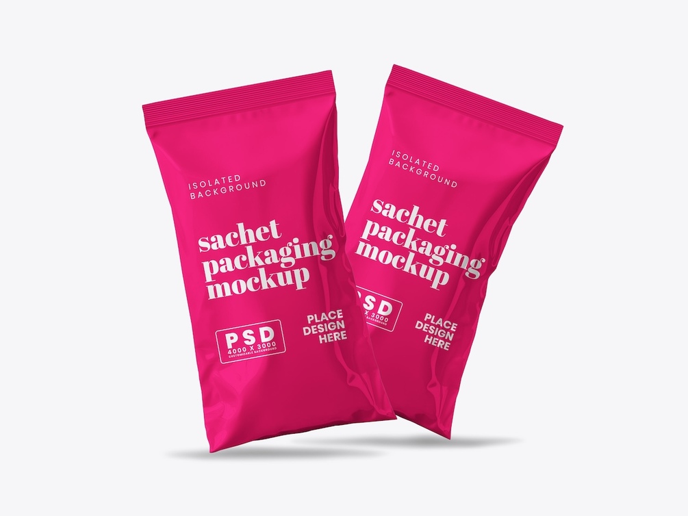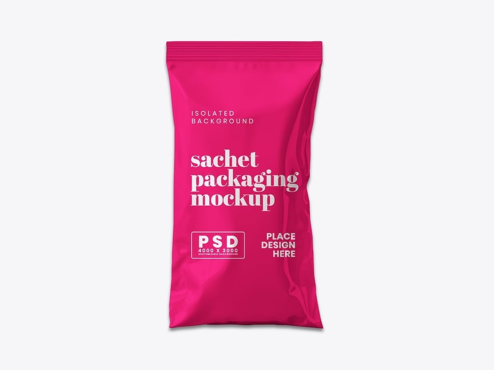 Showcase your packaging and branding designs with a clean and professional presentation using the Sachet Mockup. This high-resolution Photoshop mockup is perfect for displaying logos, labels, and packaging concepts for food, beverage, cosmetic, or household products.