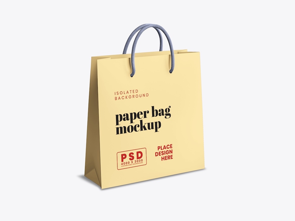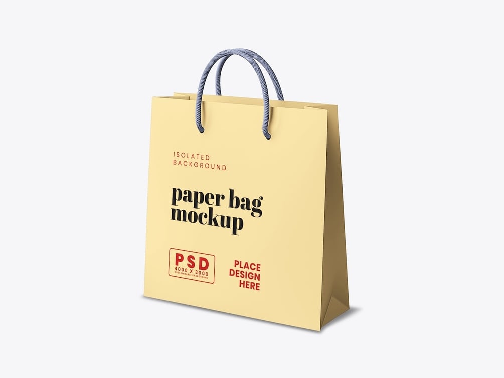 Present your branding and packaging designs with a clean, modern look using the Paper Bag Mockup. This high-resolution Photoshop mockup is ideal for showcasing logos, patterns, and brand identities on retail paper bags with realistic proportions and professional detail.