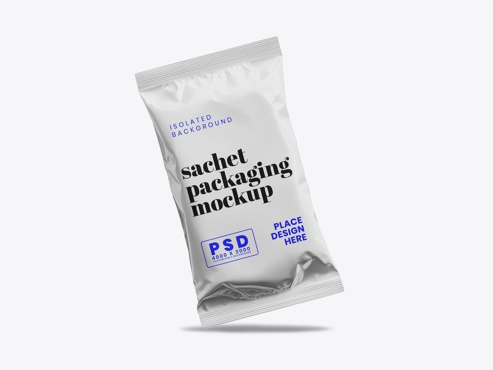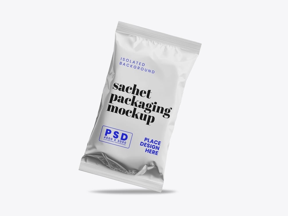 Showcase your packaging and branding designs with a clean and professional presentation using the Sachet Mockup. This high-resolution Photoshop mockup is perfect for displaying logos, labels, and packaging concepts for food, beverage, cosmetic, or household products.
