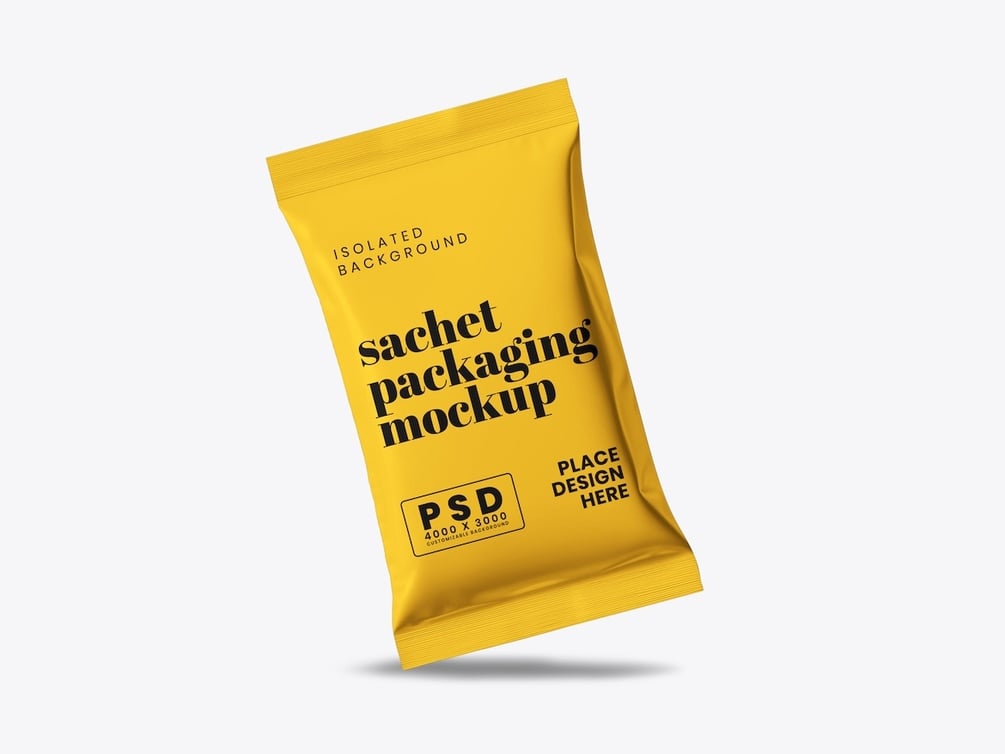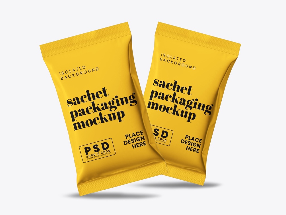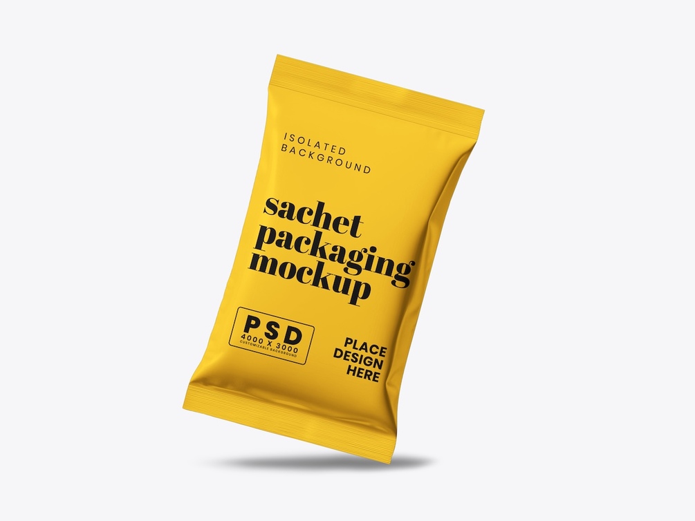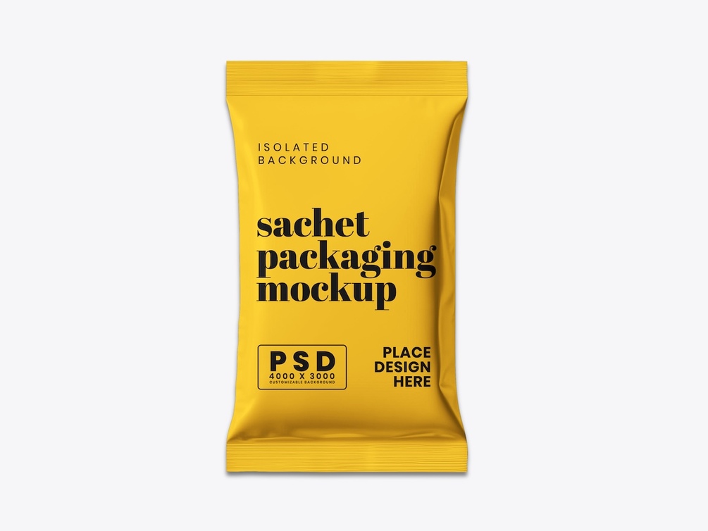 Showcase your packaging and branding designs with a clean and professional presentation using the Sachet Mockup. This high-resolution Photoshop mockup is perfect for displaying logos, labels, and packaging concepts for food, beverage, cosmetic, or household products.
