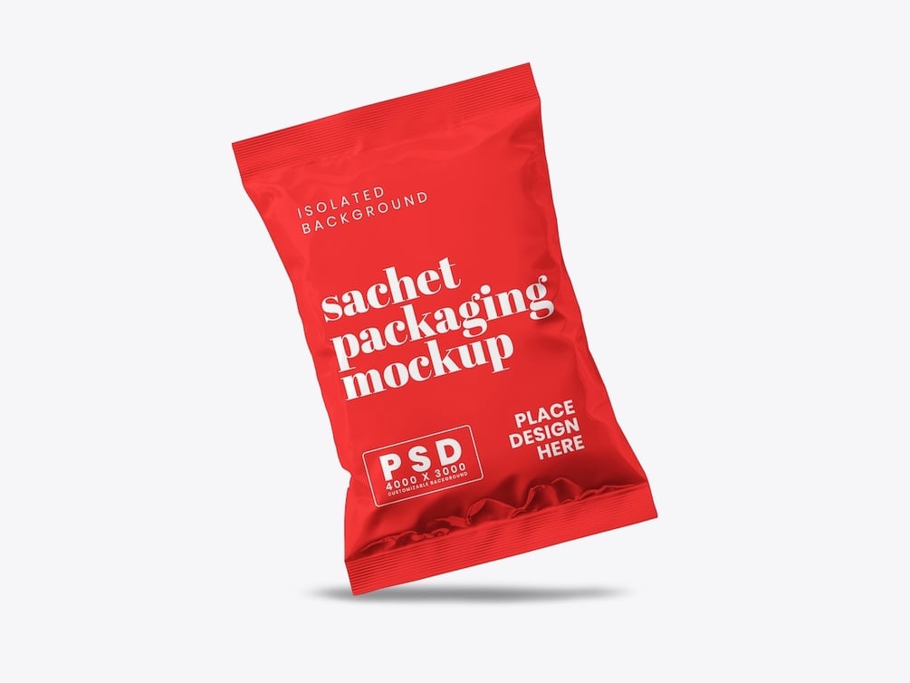 Showcase your packaging and branding designs with a clean and professional presentation using the Sachet Mockup. This high-resolution Photoshop mockup is perfect for displaying logos, labels, and packaging concepts for food, beverage, cosmetic, or household products.