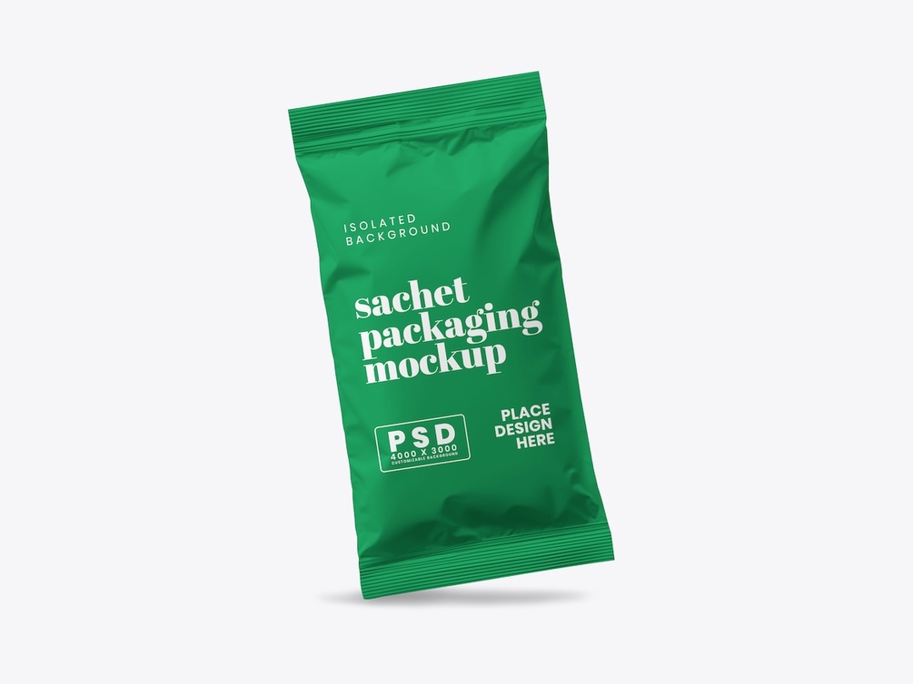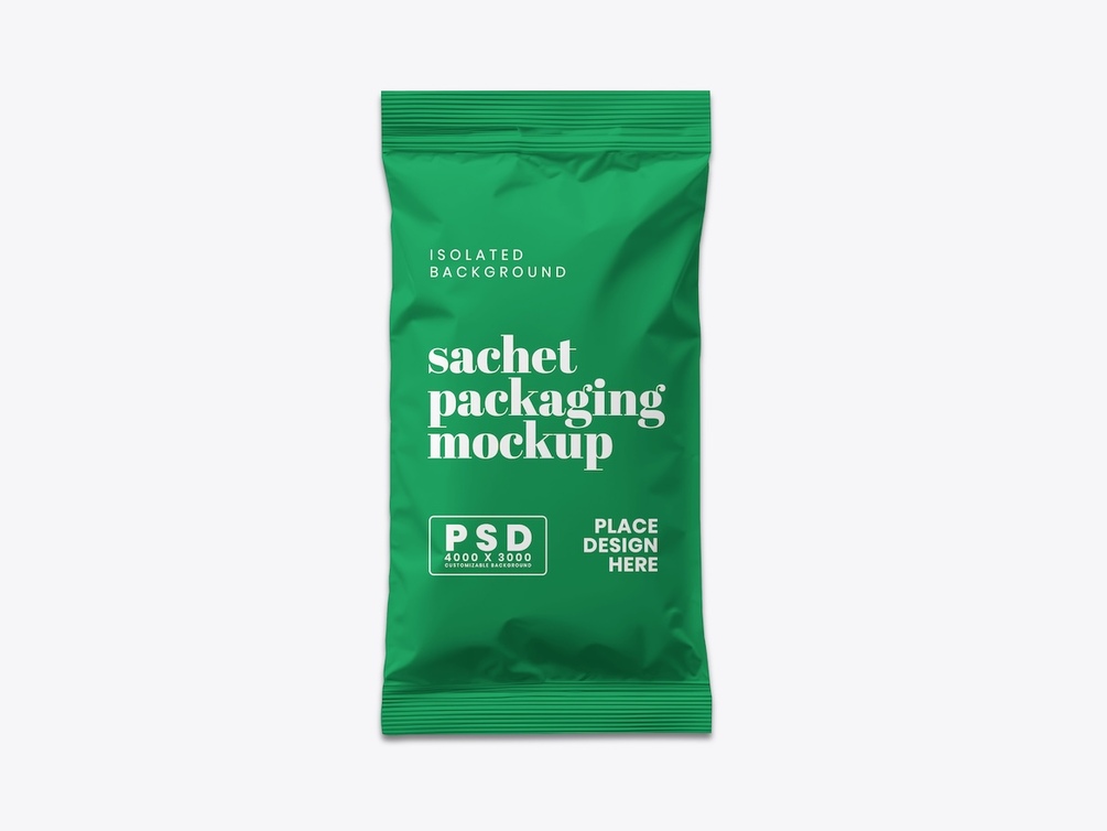 Showcase your packaging and branding designs with a clean and professional presentation using the Sachet Mockup. This high-resolution Photoshop mockup is perfect for displaying logos, labels, and packaging concepts for food, beverage, cosmetic, or household products.