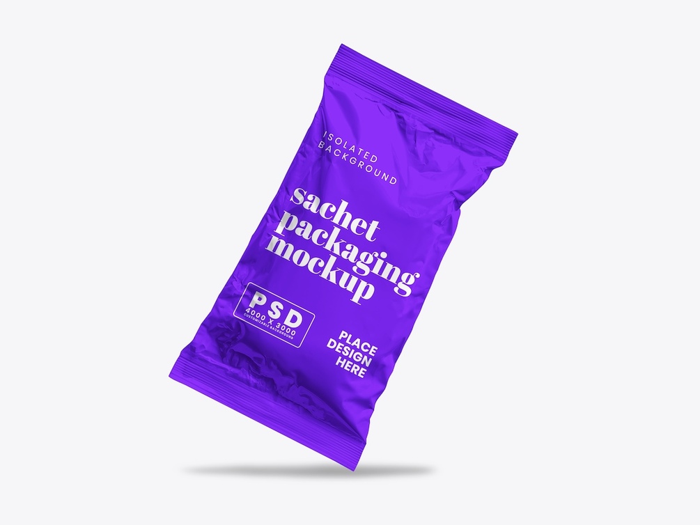 Showcase your packaging and branding designs with a clean and professional presentation using the Sachet Mockup. This high-resolution Photoshop mockup is perfect for displaying logos, labels, and packaging concepts for food, beverage, cosmetic, or household products.