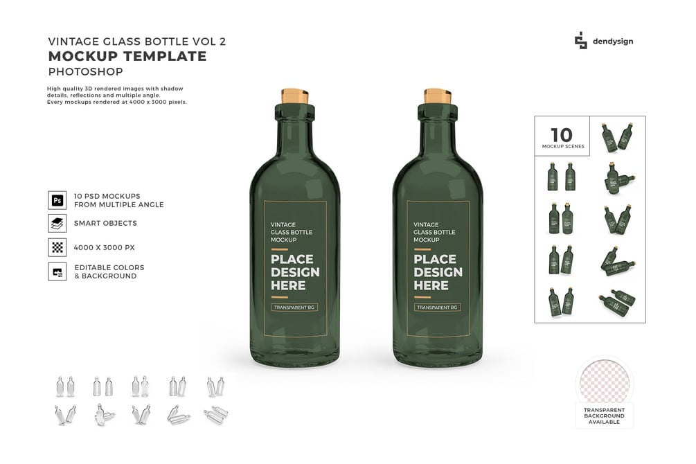 Vintage Bottle Mockup Template Set 2