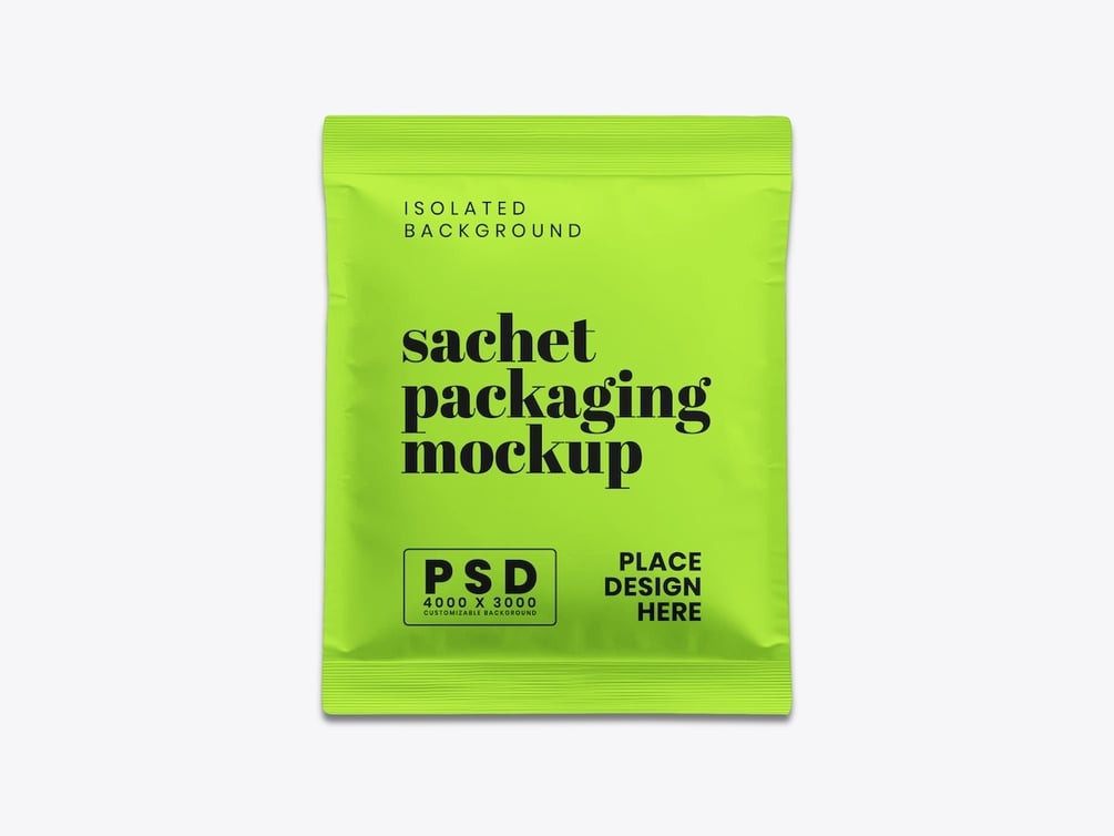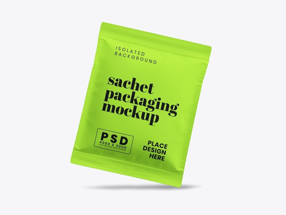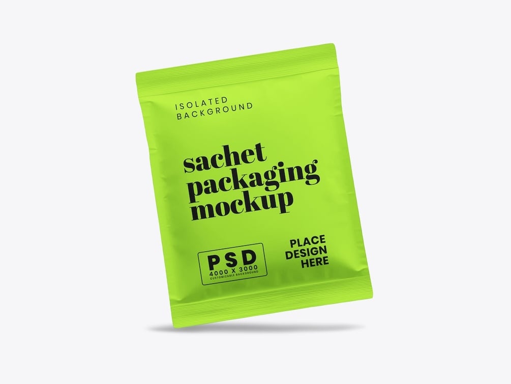 Showcase your packaging and branding designs with a clean and professional presentation using the Sachet Mockup. This high-resolution Photoshop mockup is perfect for displaying logos, labels, and packaging concepts for food, beverage, cosmetic, or household products.