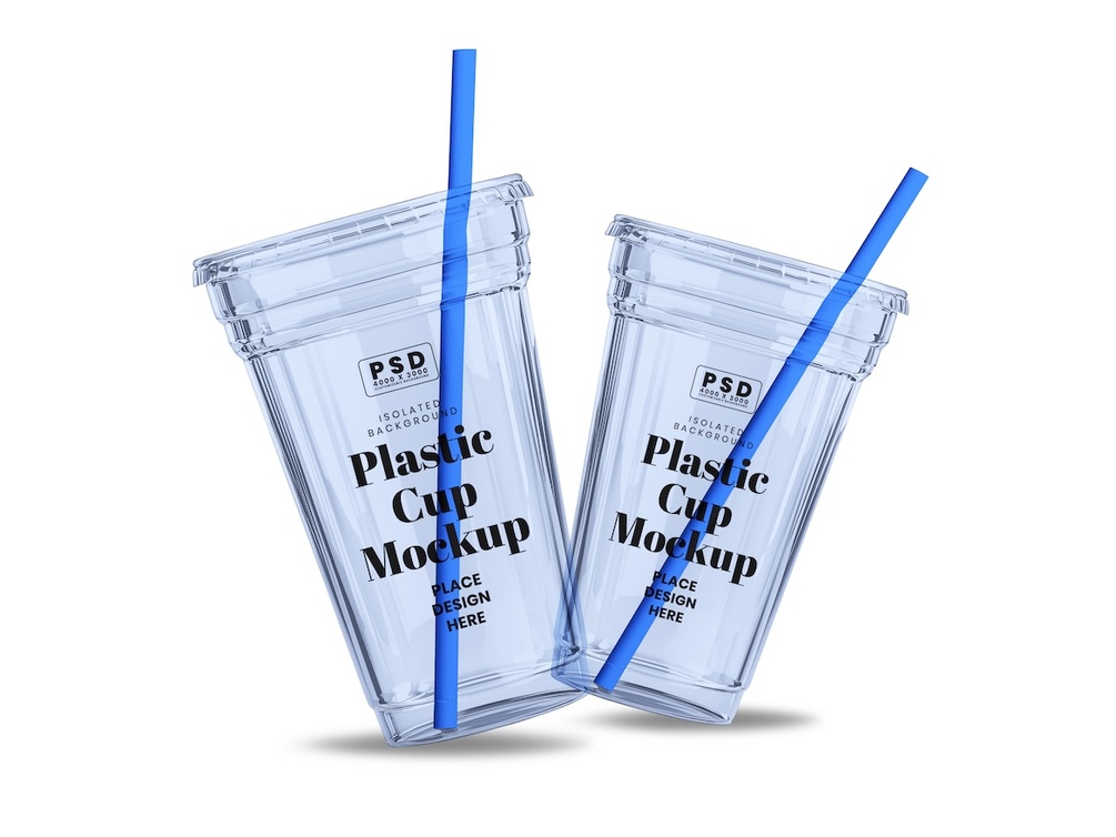 Plastic Cup with Straw Mockup – Free & Premium Versions Available